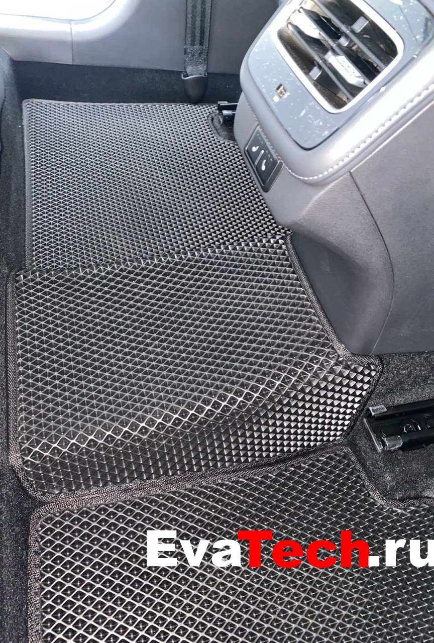 Современные автомобильные коврики EVA Geely Tugella I 2019- с уникальной ячеистой структурой неспроста набирают популярность . Ведь они справляются с любой грязью. Все, что попадает на коврики, на них и остается. Снег, вода, песок, пыль распределяются и удерживаются в ячейках. При этом, Ваша обувь не контактирует с грязью, соответственно не портится, как в резиновых "корытцах".